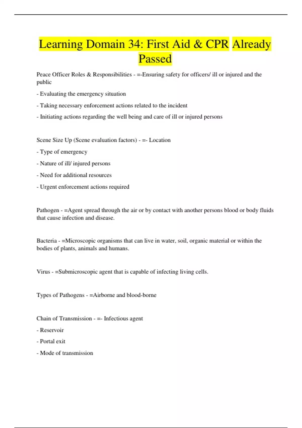 Learning Domain 34: First Aid & CPR Already