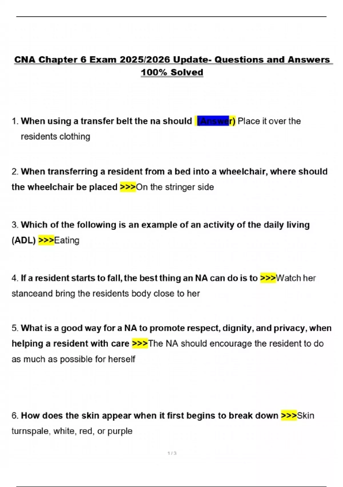 CNA Chapter 6 Exam 2025/2026 Update- Questions and Answers 100% Solved