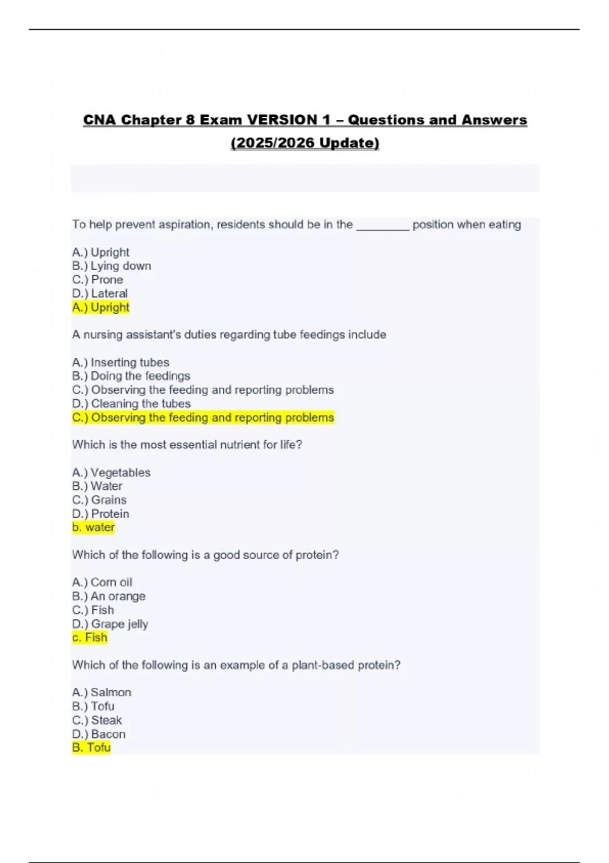 CNA Chapter 8 Exam VERSION 1 – Questions and Answers (2025/2026 Update)