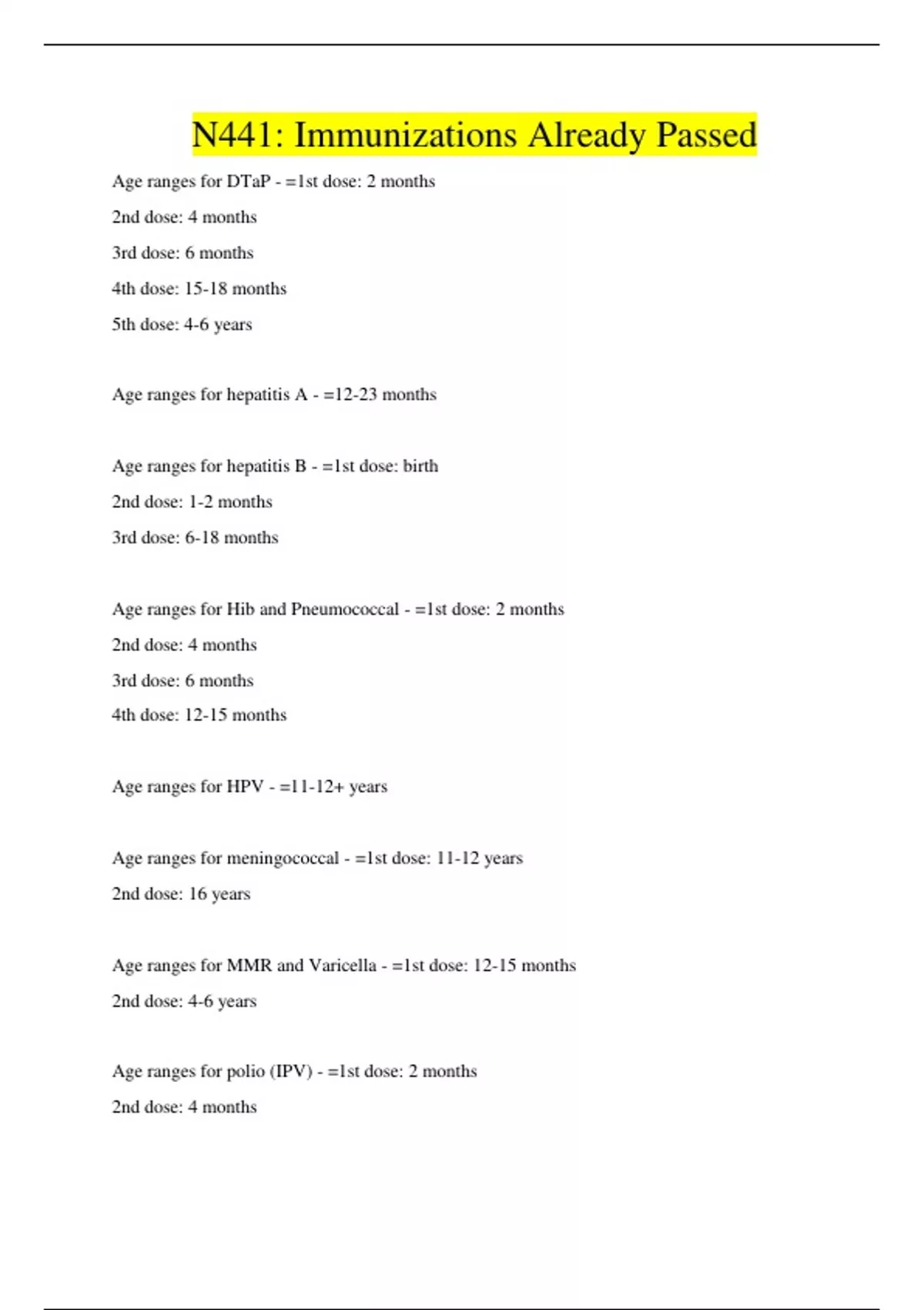 Age ranges for polio (IPV) - =1st dose: 2 months