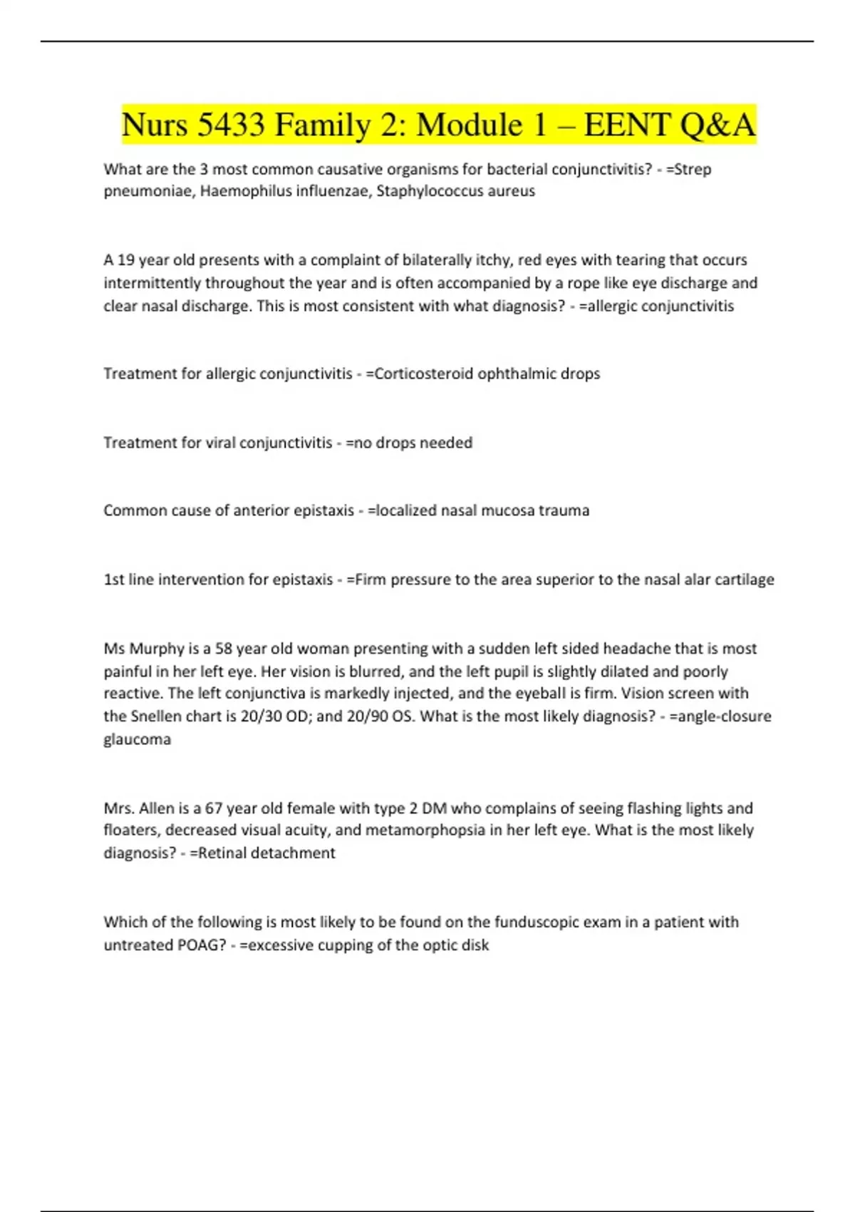 Nurs 5433 Family 2: Module 1 – EENT Q&A