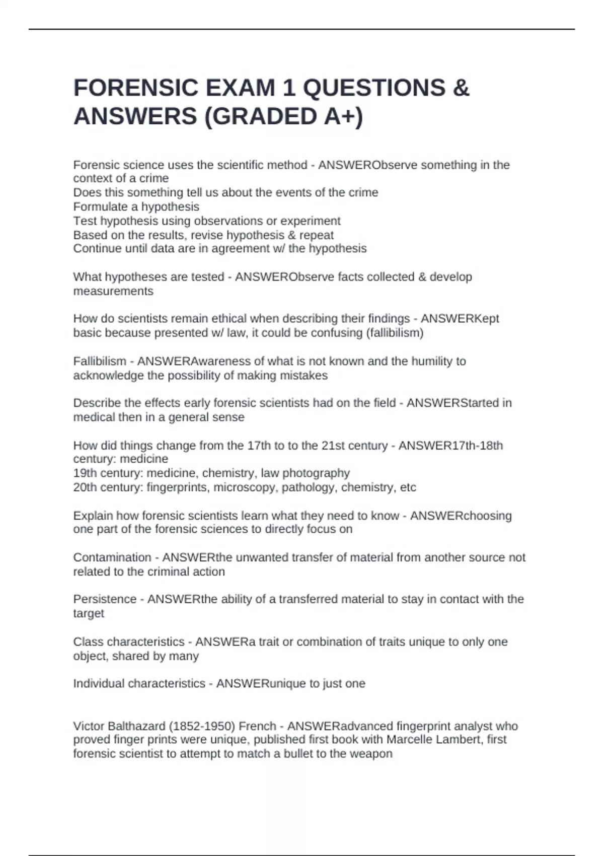 FORENSIC EXAM 1 QUESTIONS & ANSWERS (GRADED A+)