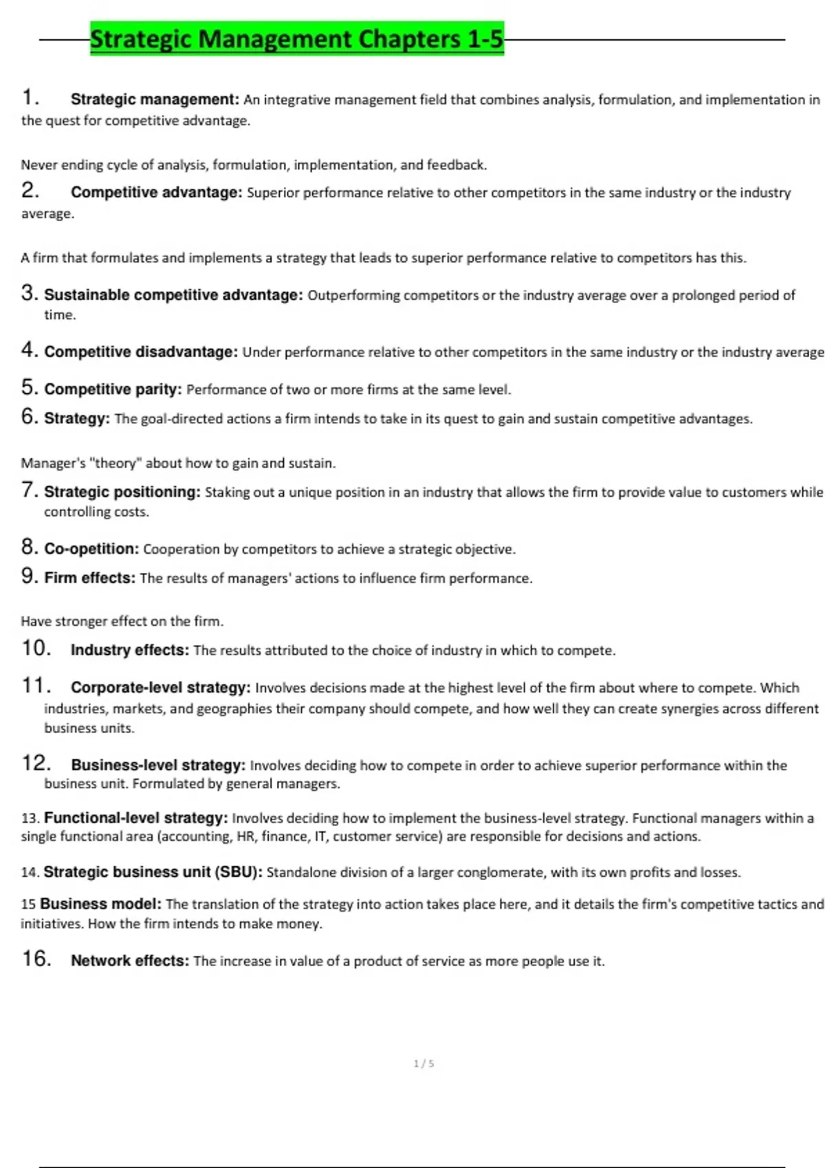 1. Strategic management: An integrative management field that combines analysis, formulation, and implementation in