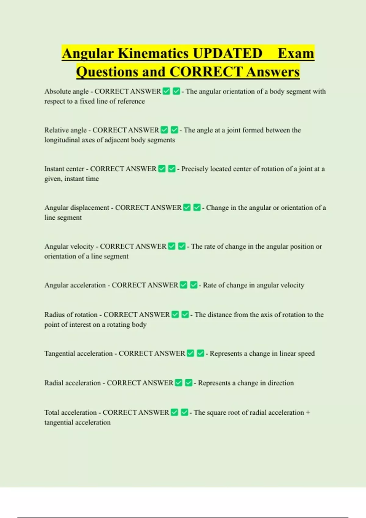 Angular Kinematics UPDATED Exam Questions and CORRECT Answers