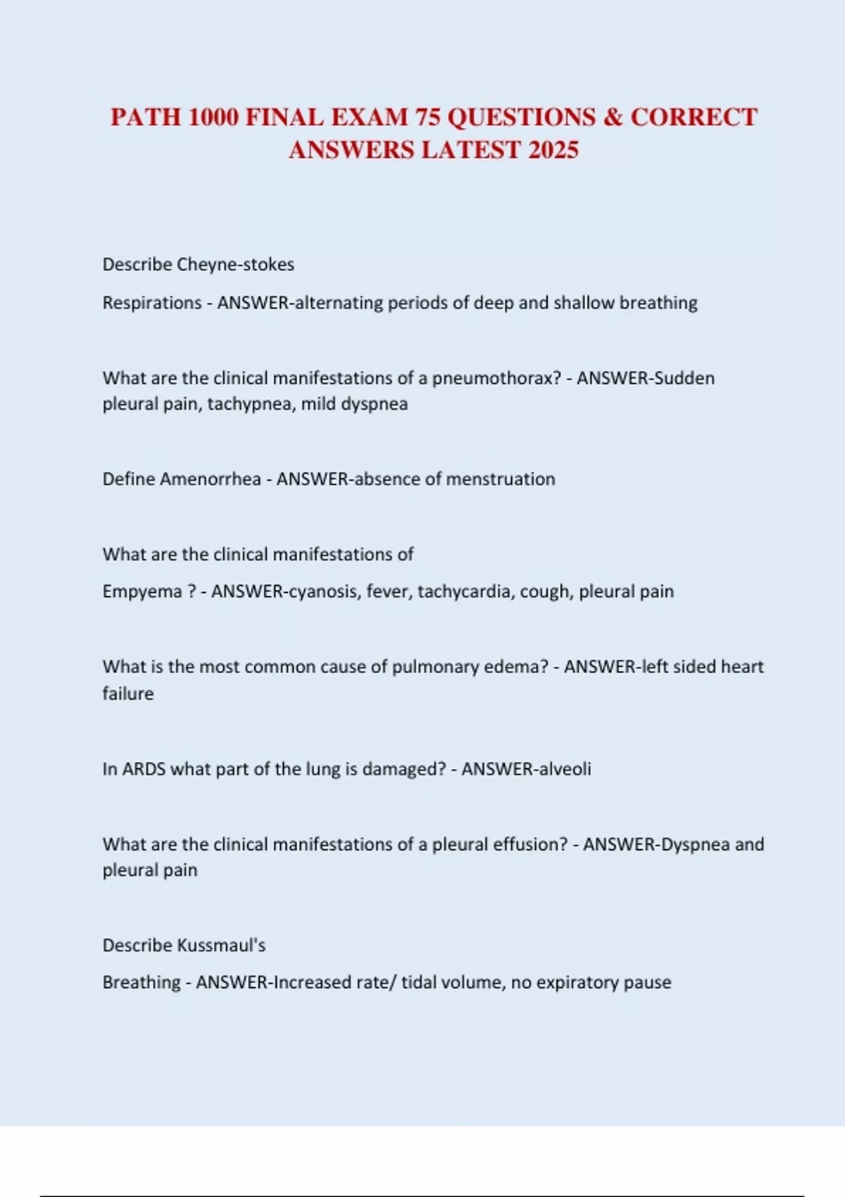 PATH 1000 FINAL EXAM 75 QUESTIONS & CORRECT