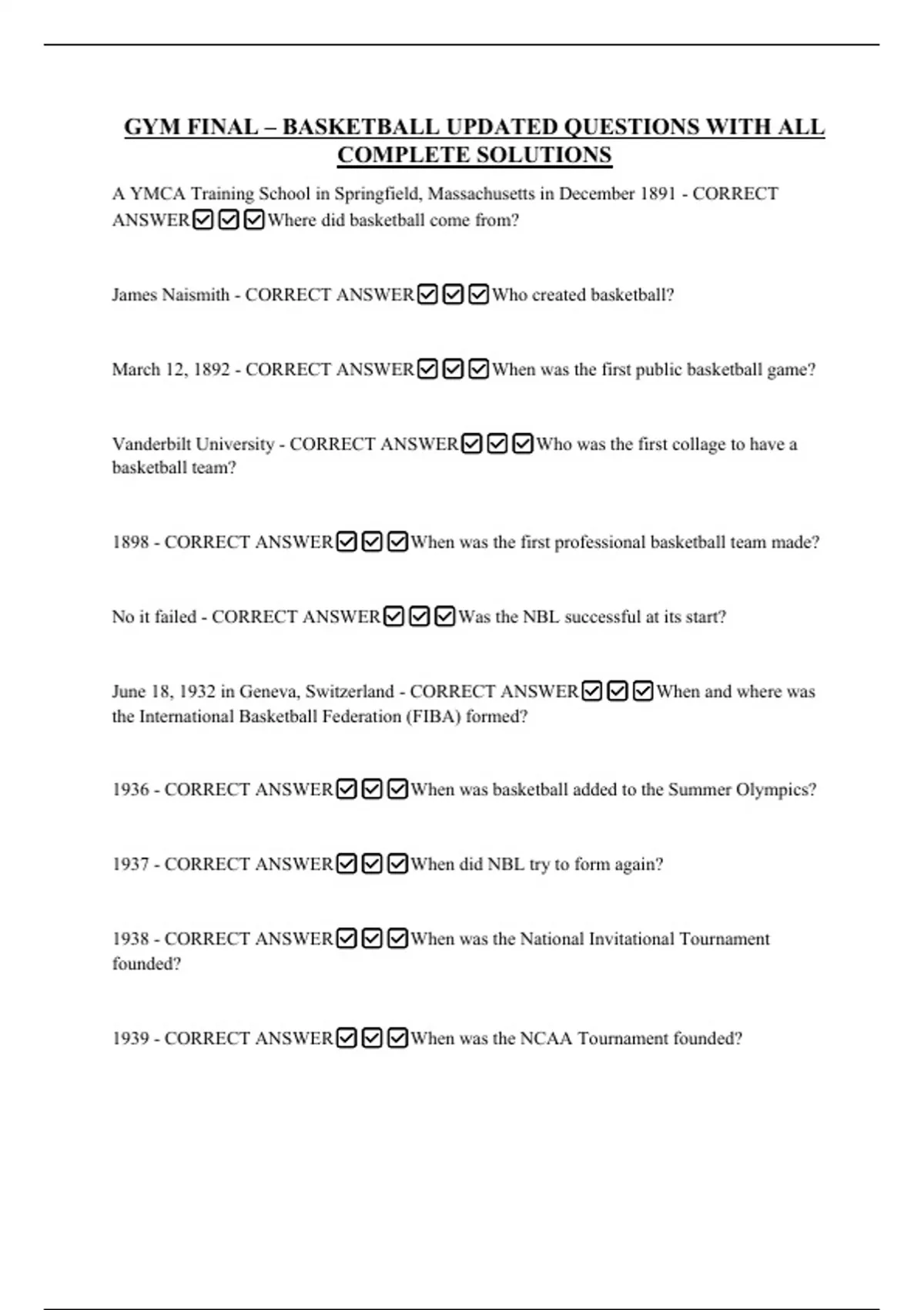 GYM FINAL – BASKETBALL UPDATED QUESTIONS WITH ALL COMPLETE SOLUTIONS