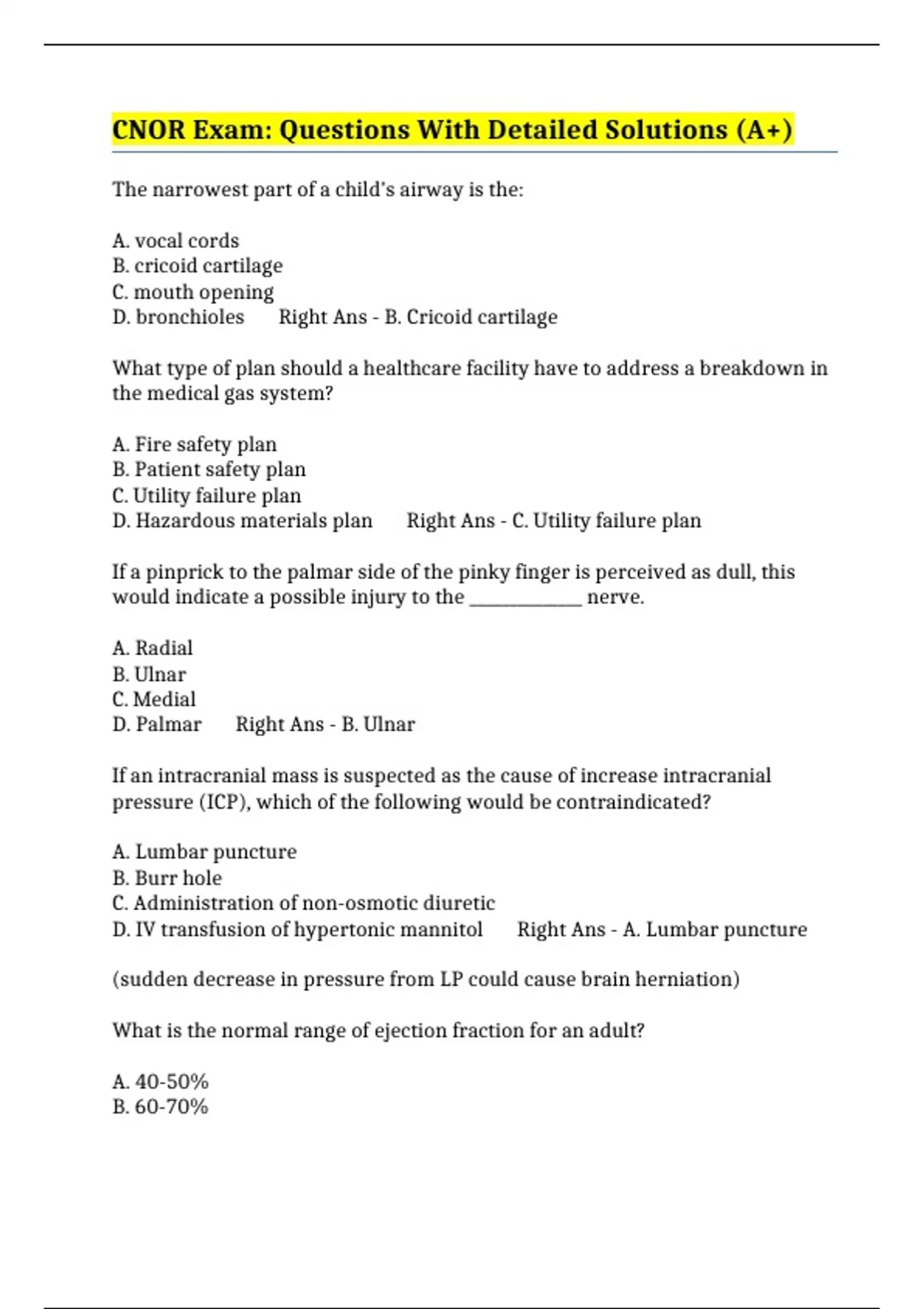 CNOR Exam: Questions With Detailed Solutions (A+)