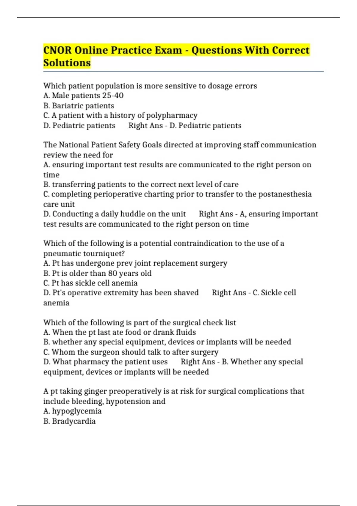 D. Pt's operative extremity has been shaved Right Ans - C. Sickle cell