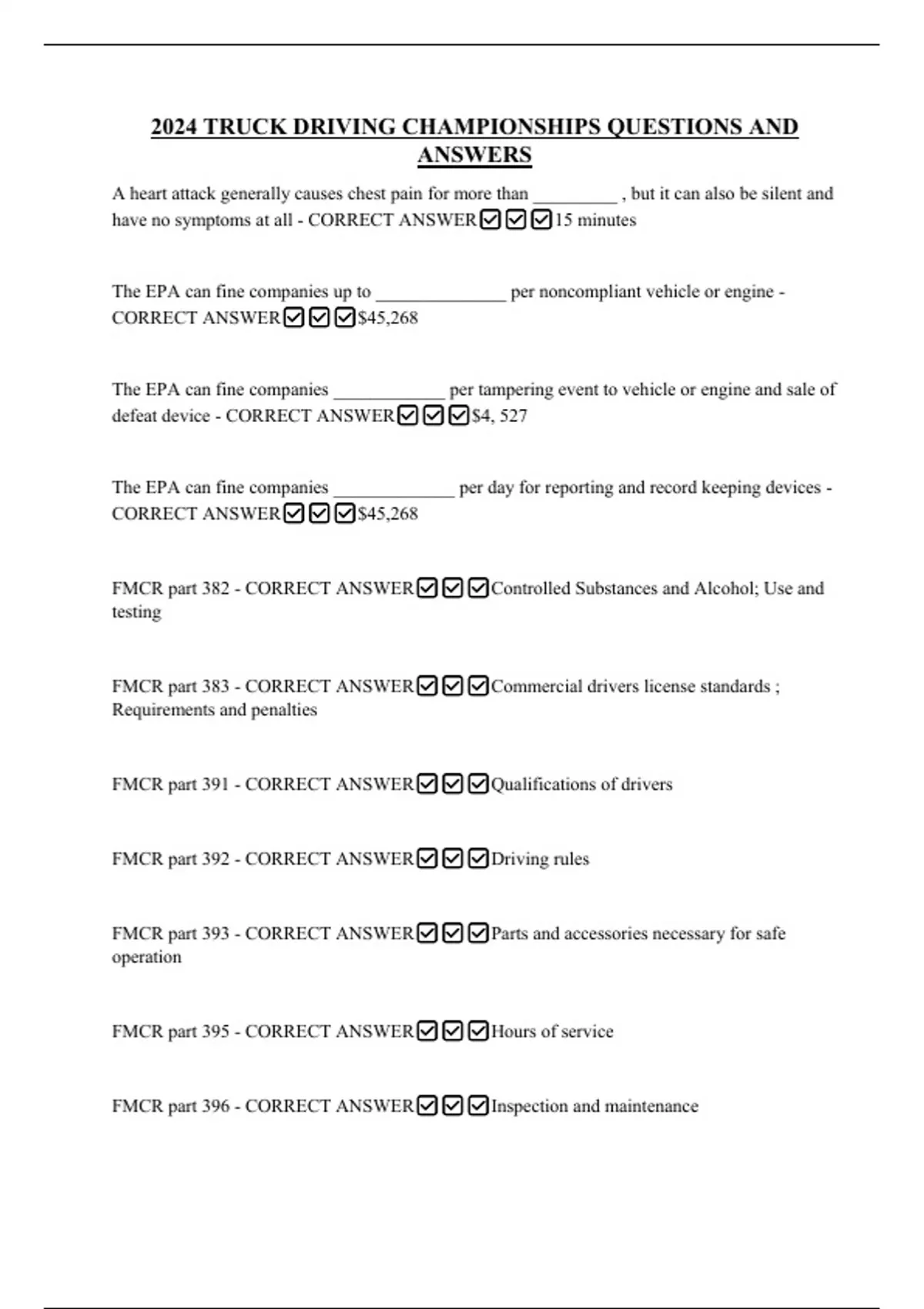 FMCR part 382 - CORRECT ANSWER✅✅✅Controlled Substances and Alcohol; Use and