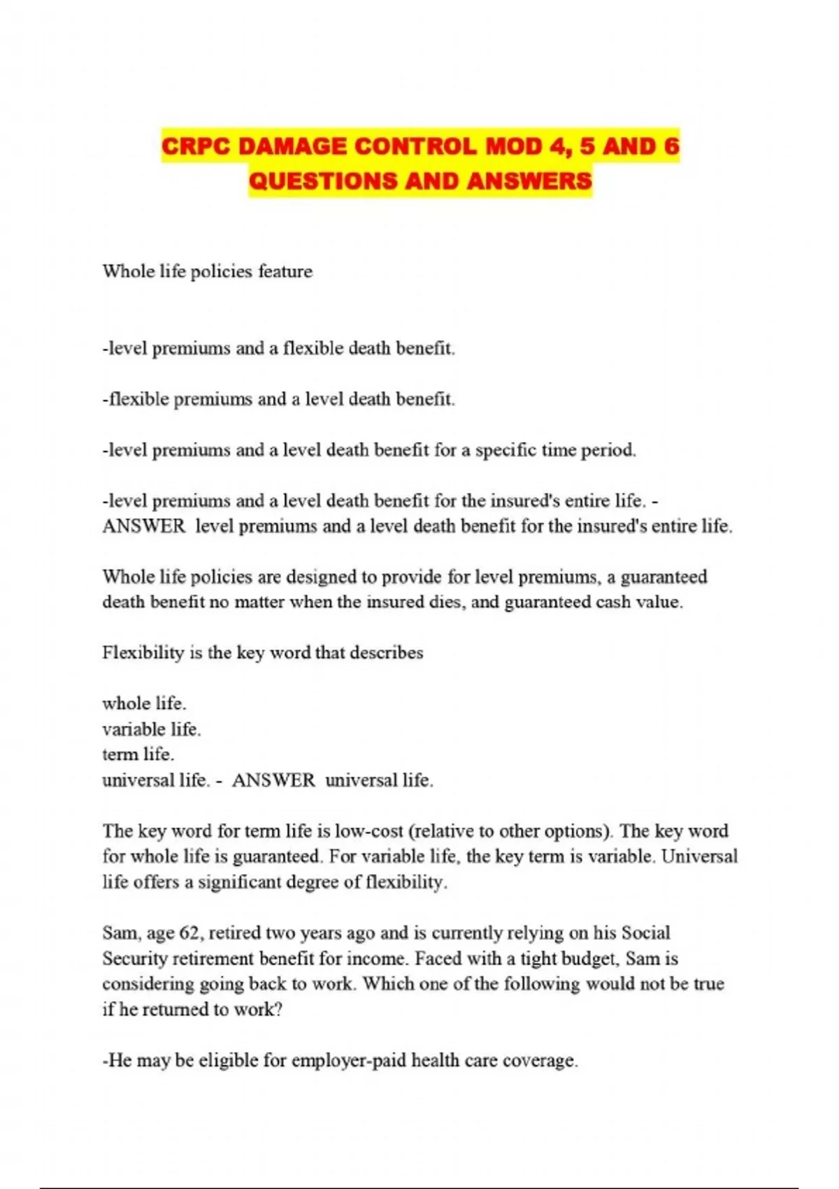CRPC DAMAGE CONTROL MOD 4, 5 AND 6 QUESTIONS AND ANSWERS...