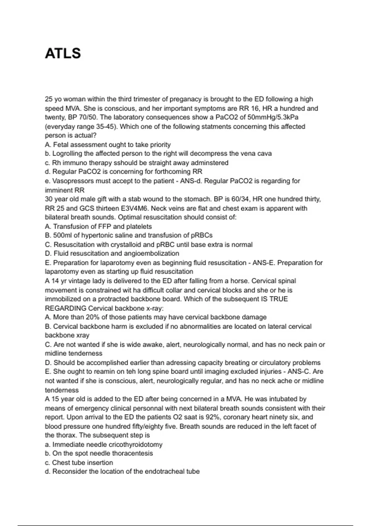 speed MVA. She is conscious, and her important symptoms are RR 16, HR a hundred and