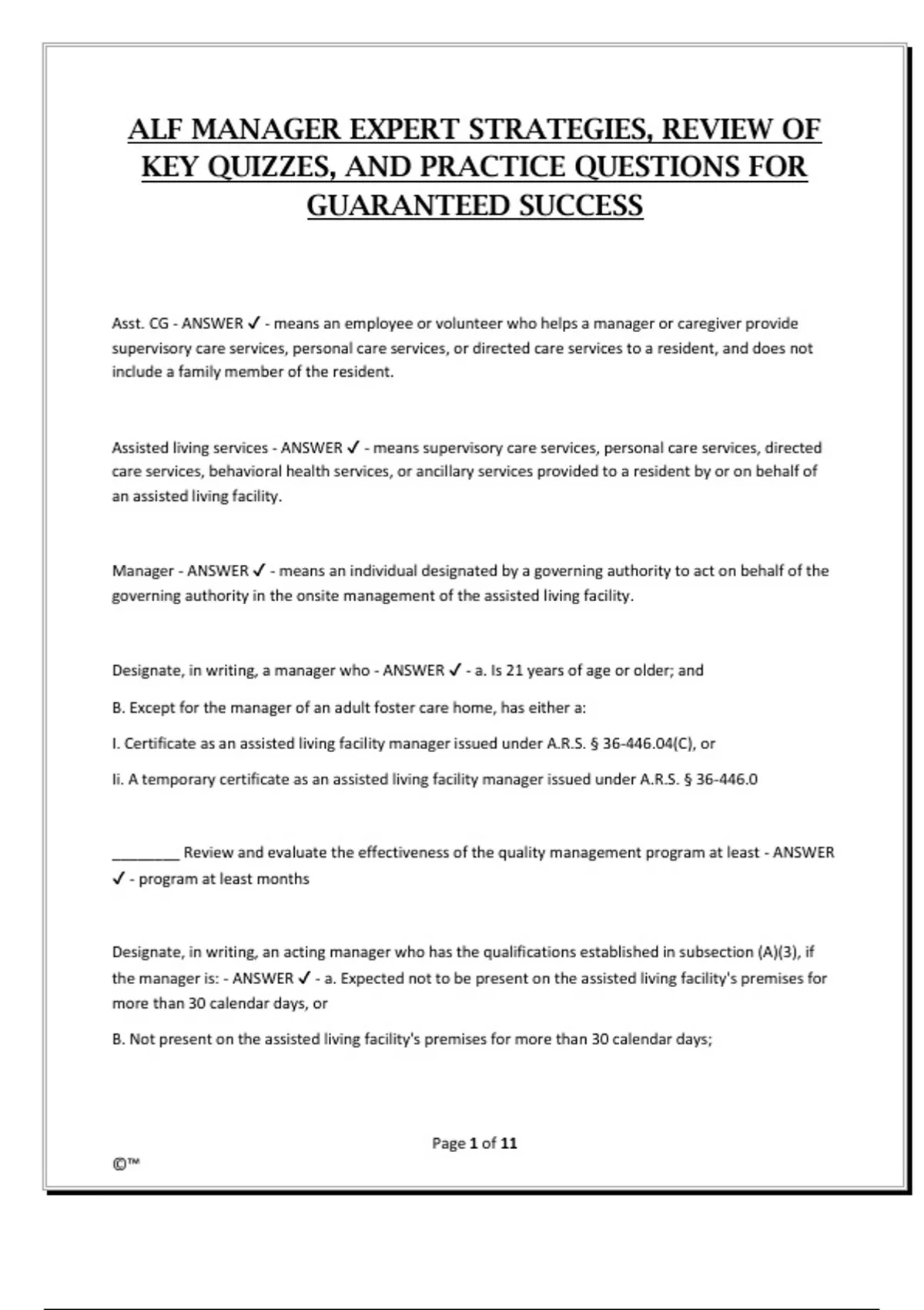 , A manager: - ANSWER ✔ - 1. Is directly accountable to the governing authority of an assisted living