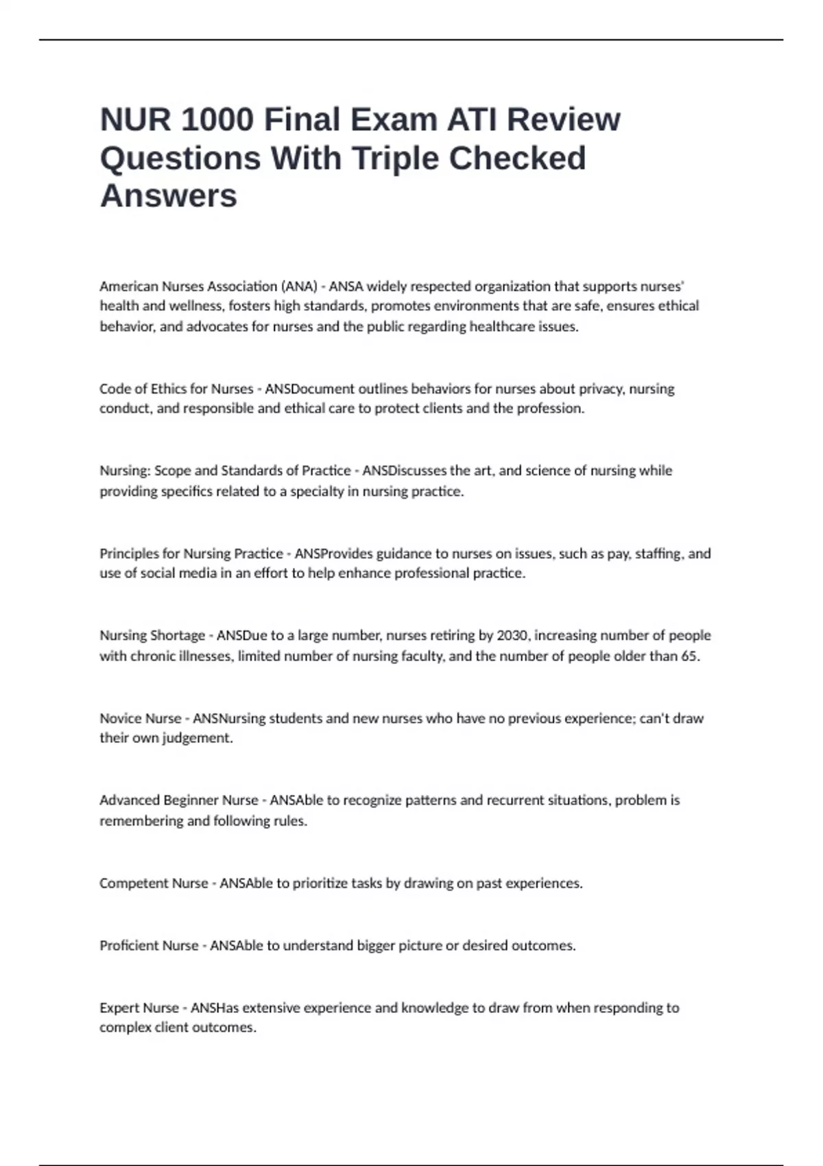 American Nurses Association (ANA) - ANSA widely respected organization that supports nurses'