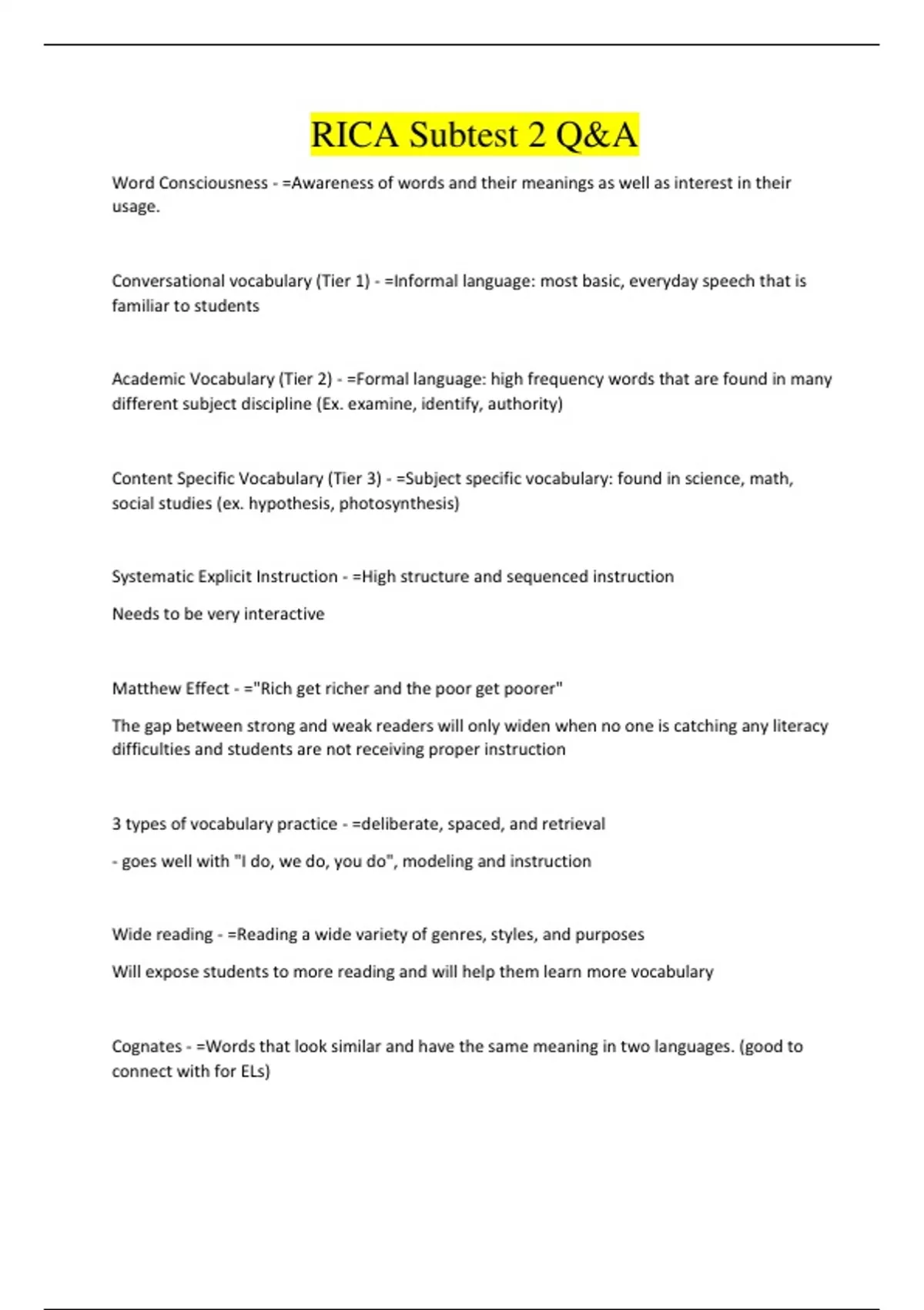 RICA Subtest 2 Q&A
