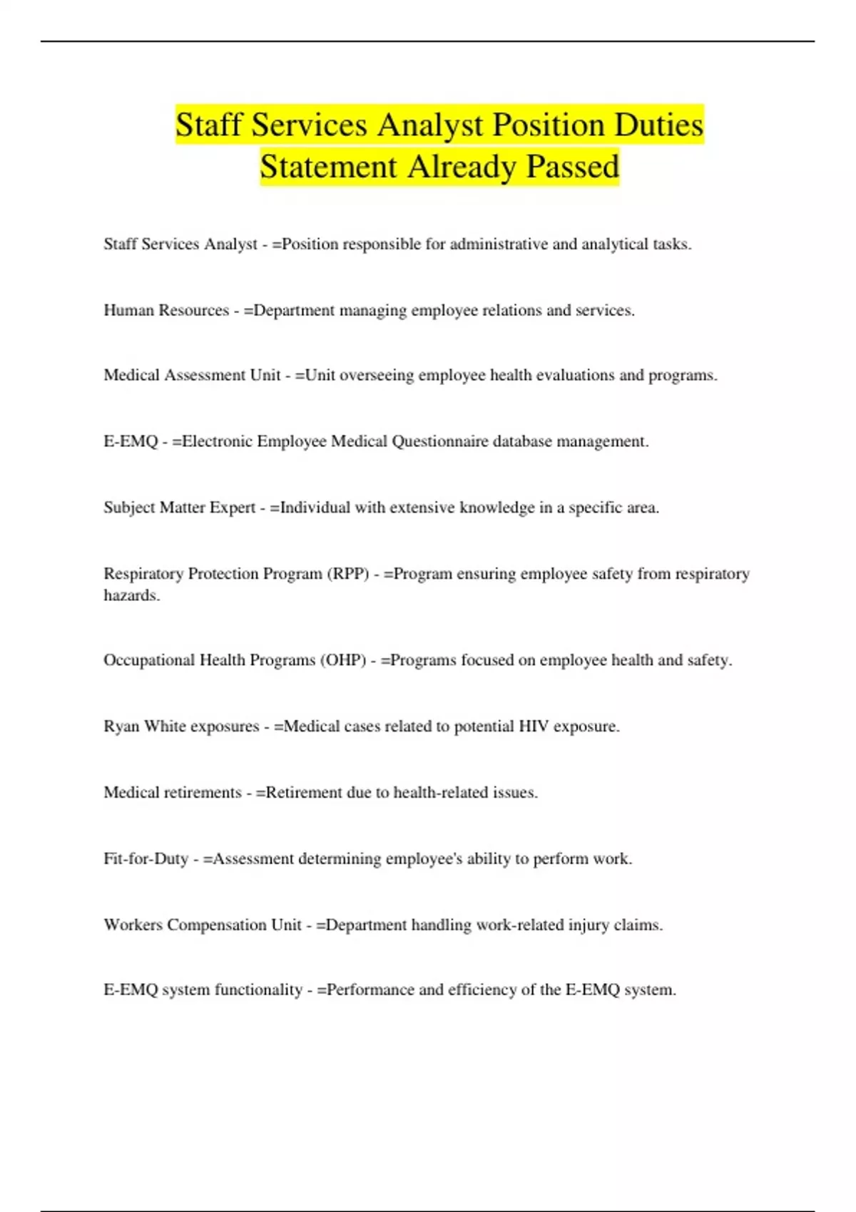 Staff Services Analyst Position Duties Statement Already Passed
