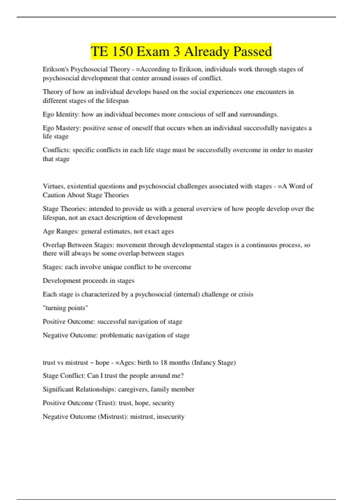 Erikson's Psychosocial Theory - =According to Erikson, individuals work through stages of