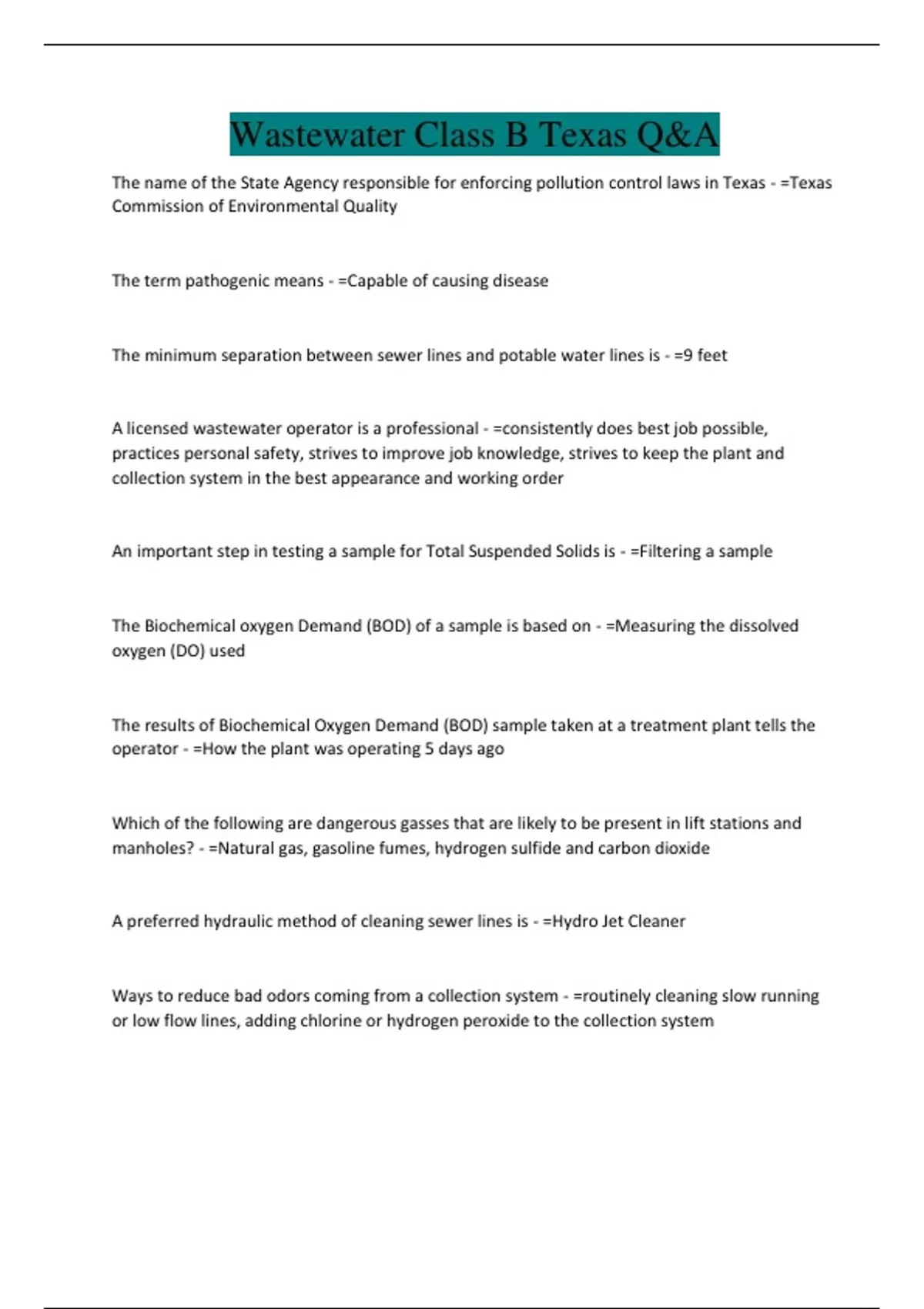 Wastewater Class B Texas Q&A