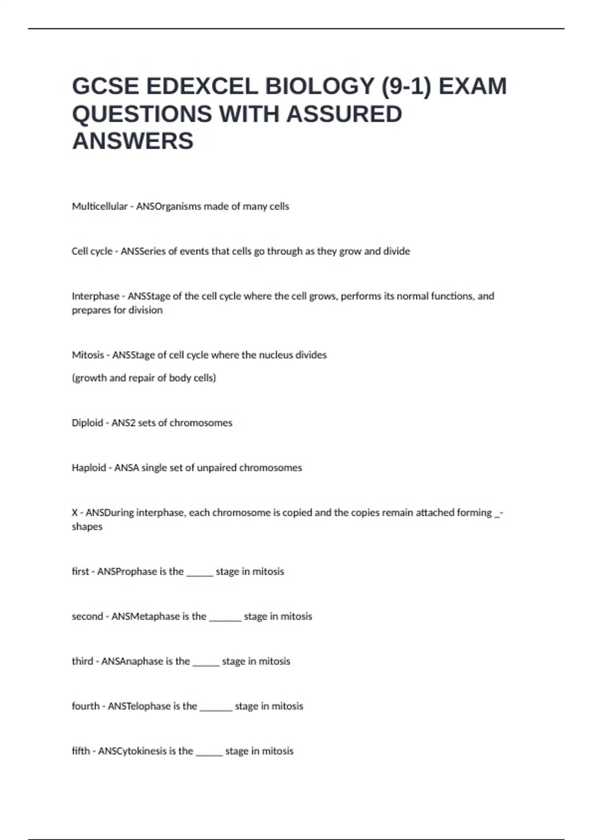 GCSE EDEXCEL BIOLOGY (9-1) EXAM