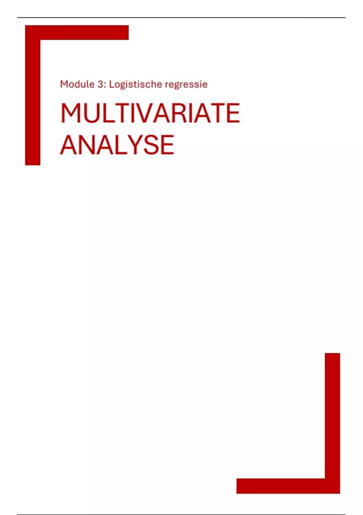 Dit is een samenvatting van de derde module (logistische regressie) van het vak multivariate analyse. De samenvatting is gebaseerd op de powerpoints en aangevuld met het boek en lesnotities.