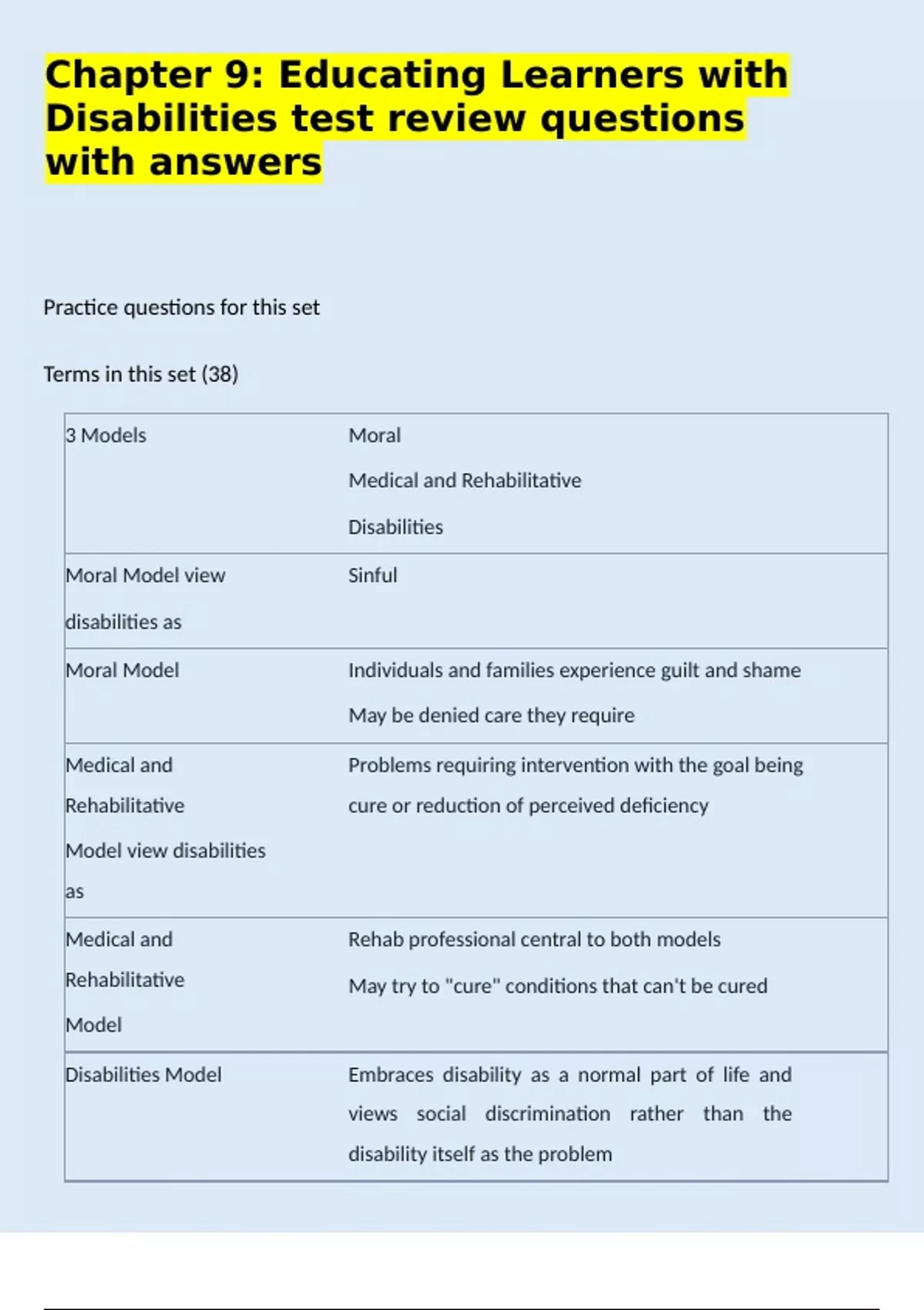 Disabilities test review questions