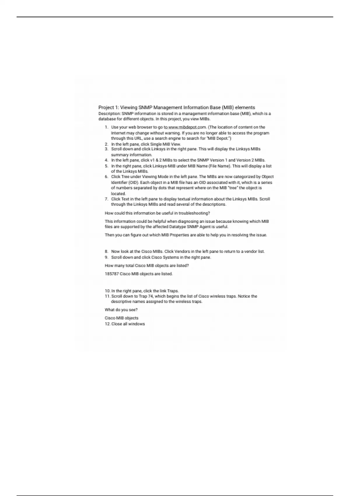 database for different objects. In this project, you view MIBs.