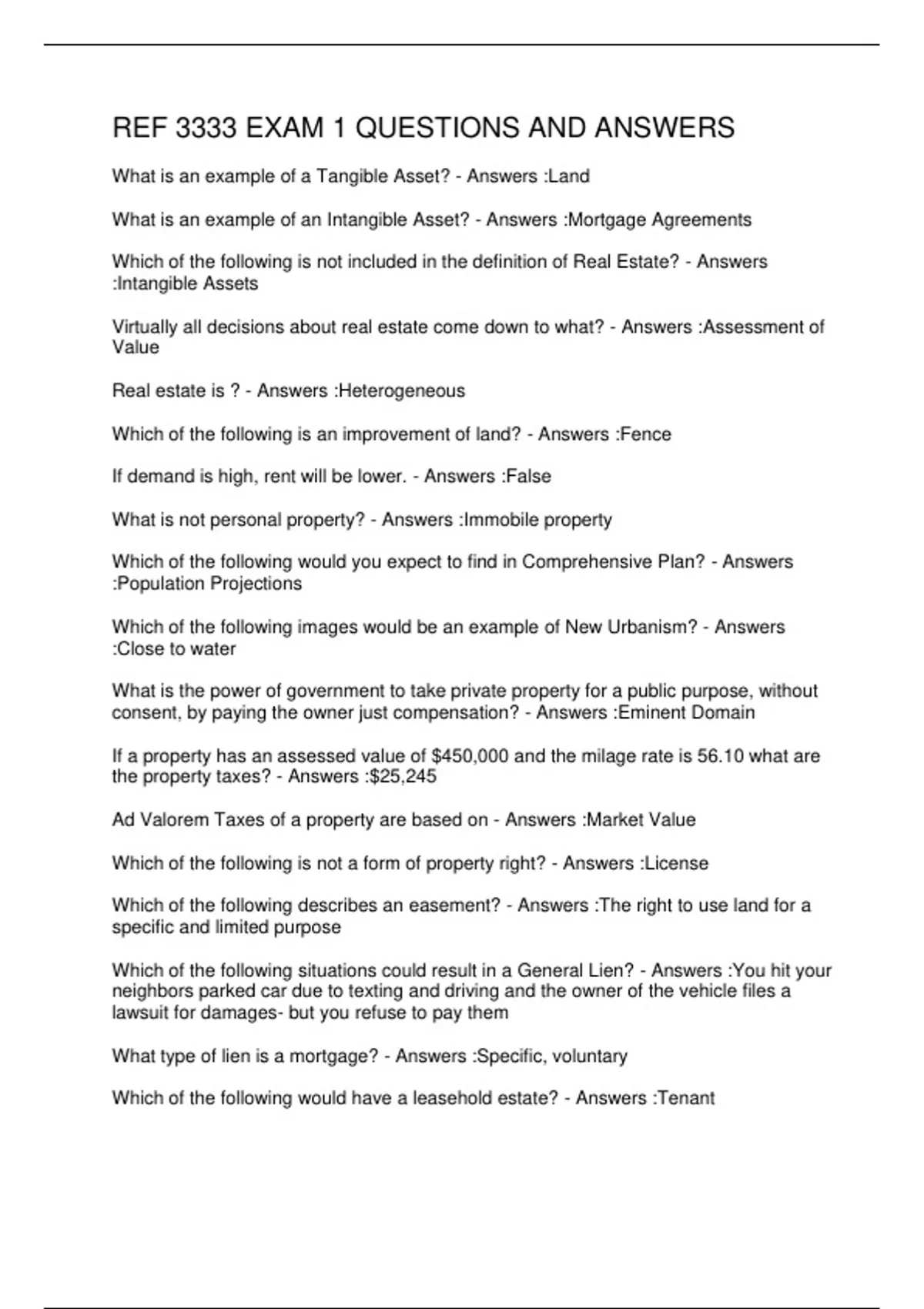 REF 3333 EXAM 1 QUESTIONS AND ANSWERS