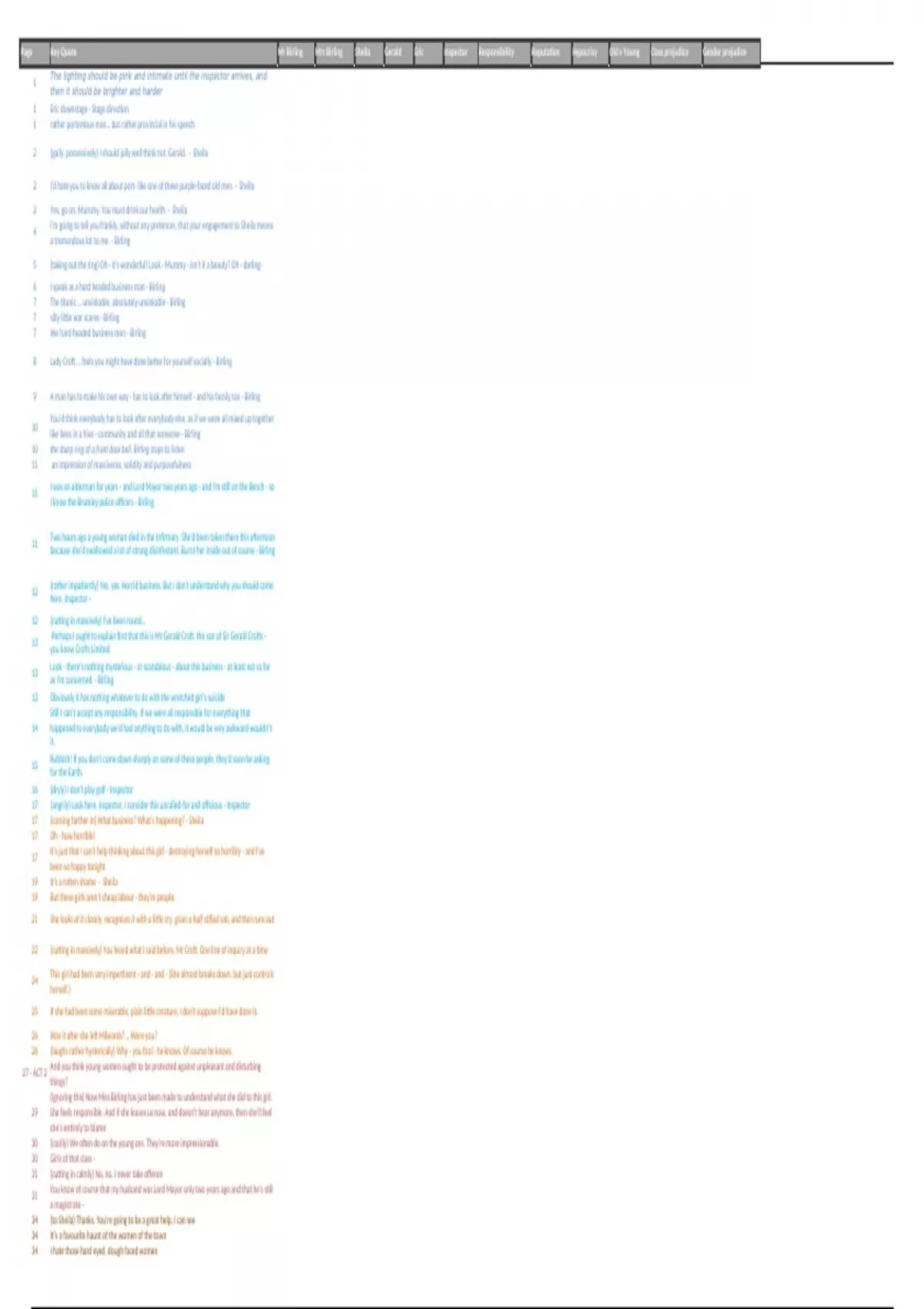 Page Key Quote Mr Birling Mrs Birling Sheila Gerald Eric Inspector Responsibility Reputation Hypocrisy Old v Young Class prejudice Gender prejudice