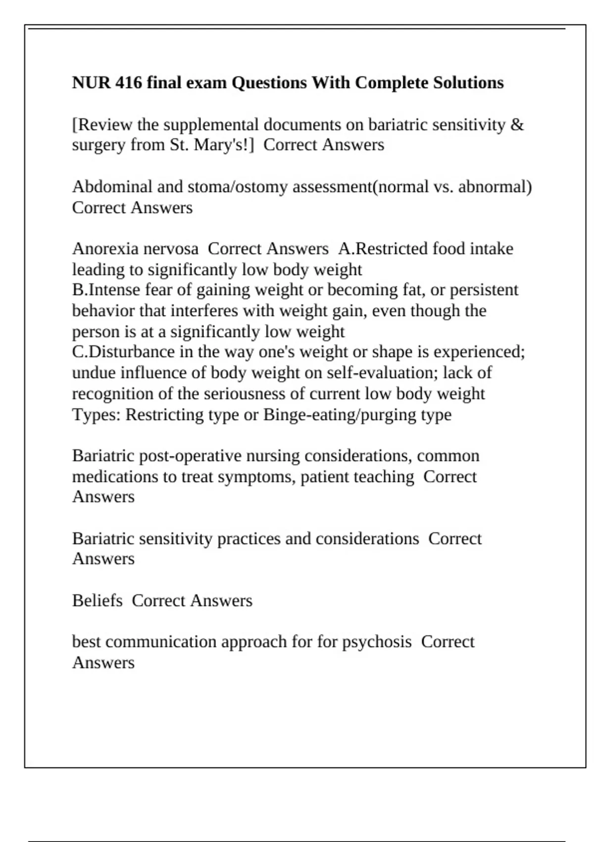 Anorexia nervosa Correct Answers A.Restricted food intake