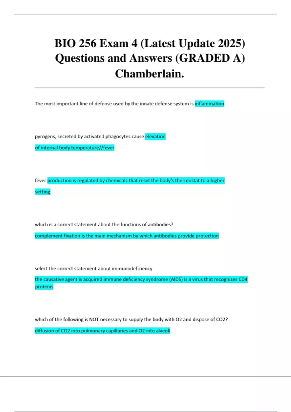 BIO 256 Exam 4 (Latest Update 2025) Questions and Answers (GRADED A) Chamberlain.