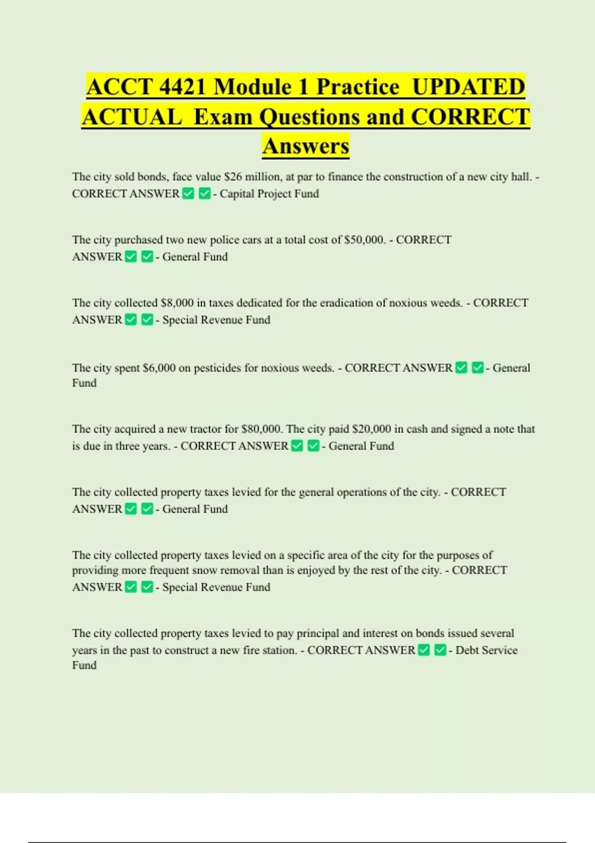 years in the past to construct a new fire station. - CORRECT ANSWER - Debt Service