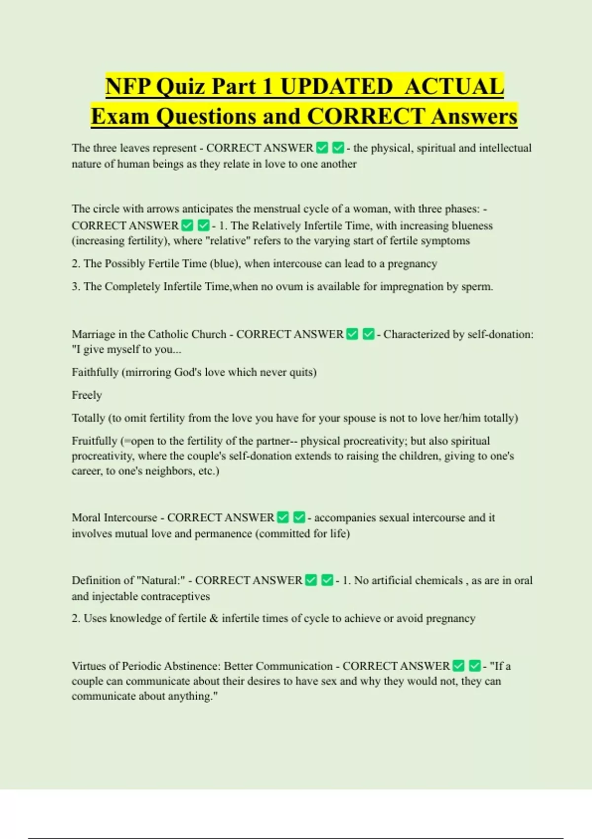 What is NFP? - CORRECT ANSWER - Natural Family Planning uses the knowledge of