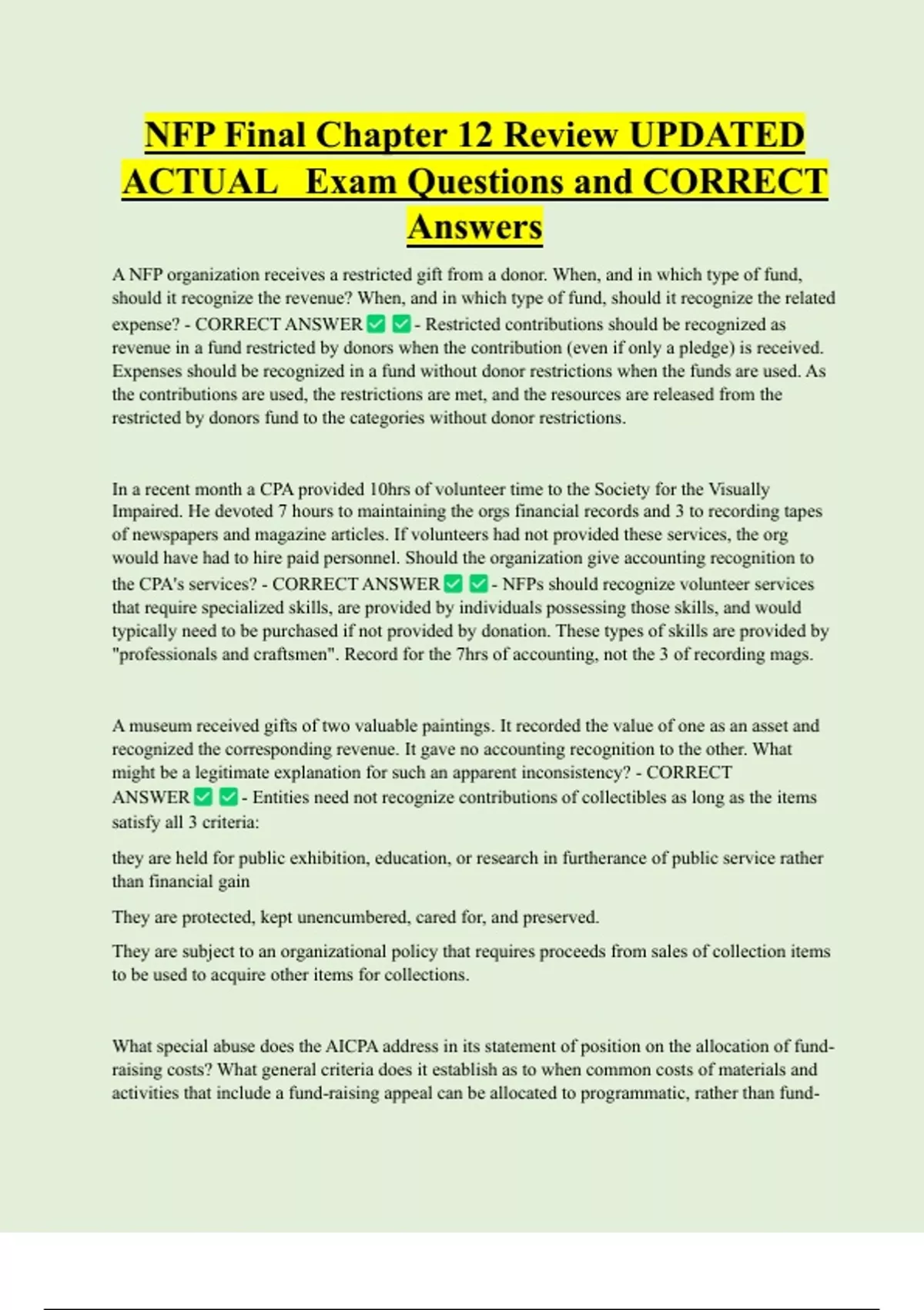 the CPA's services? - CORRECT ANSWER - NFPs should recognize volunteer services