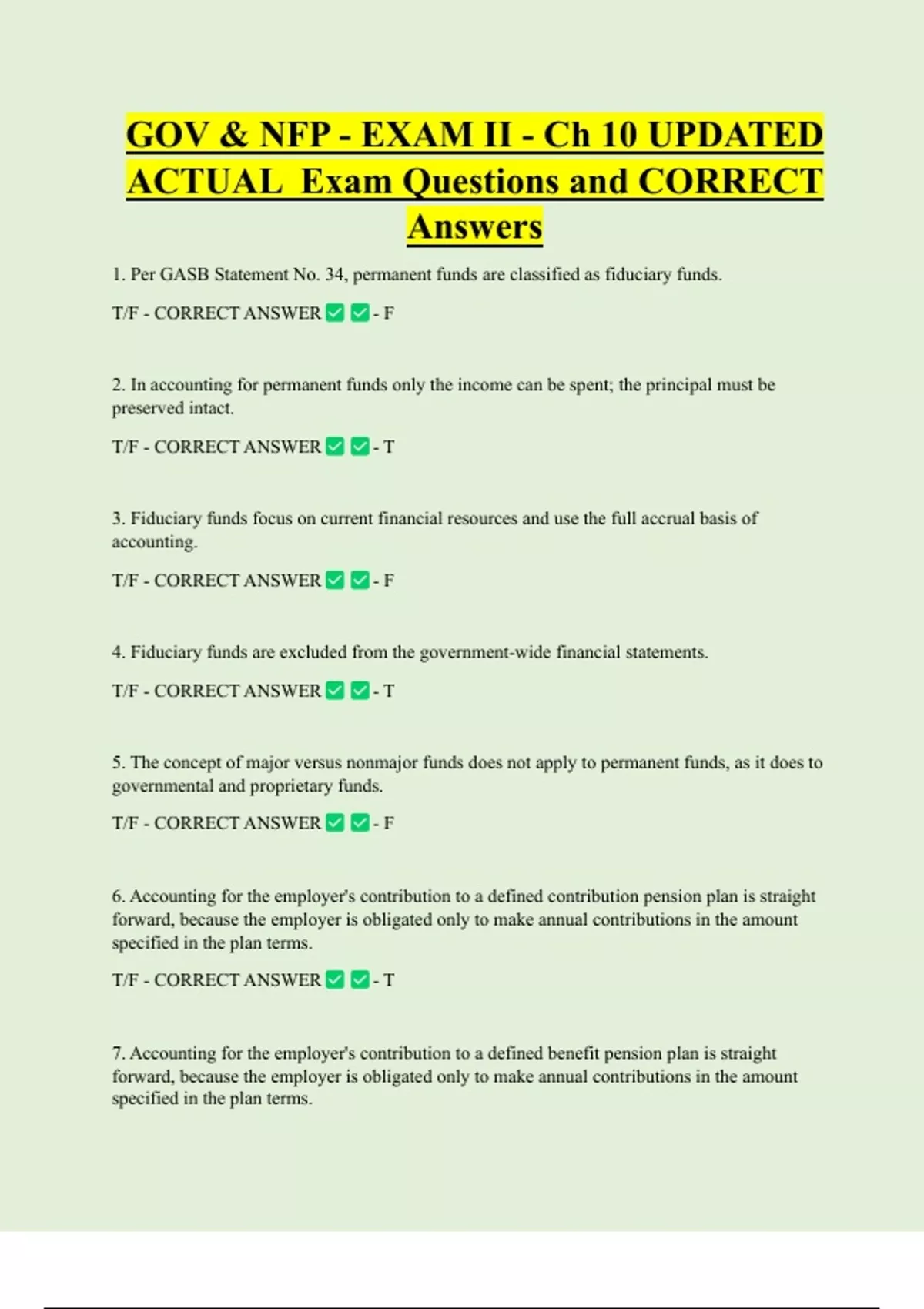 1. Per GASB Statement No. 34, permanent funds are classified as fiduciary funds.