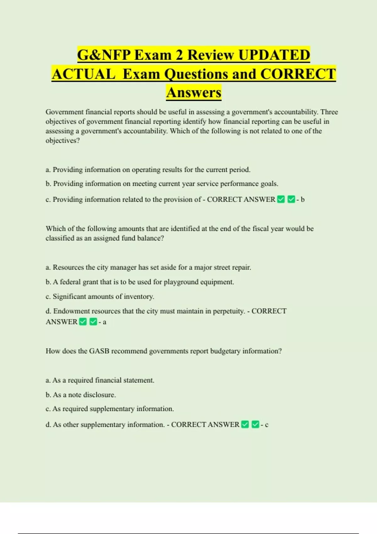 ACTUAL Exam Questions and CORRECT