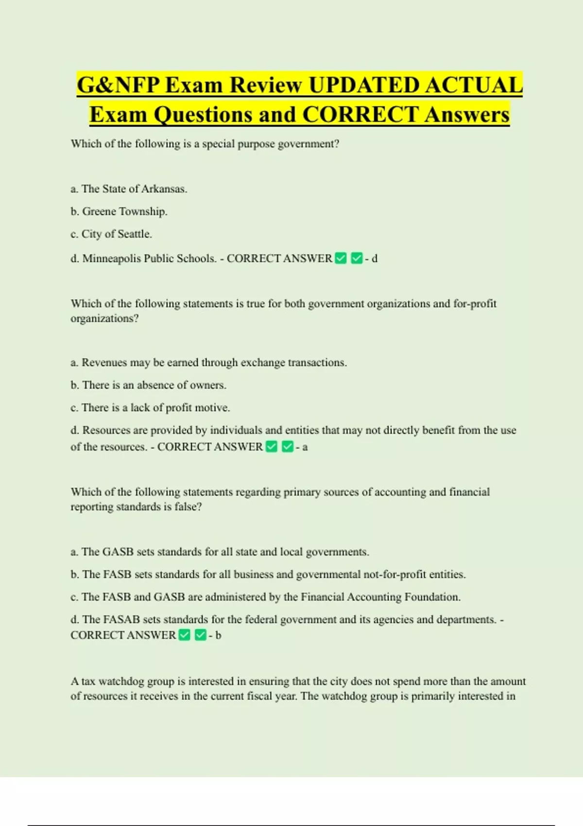 Exam Questions and CORRECT Answers