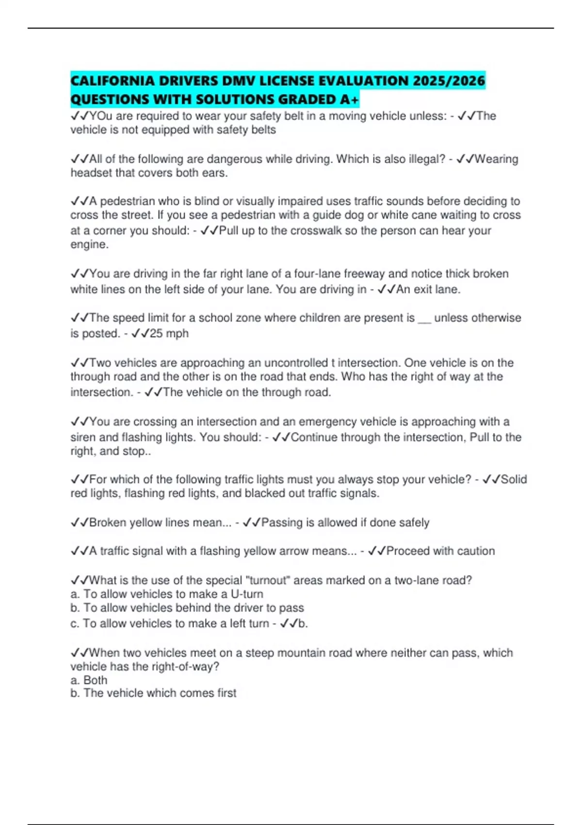 CALIFORNIA DRIVERS DMV LICENSE EVALUATION 2025/2026 QUESTIONS WITH SOLUTIONS GRADED A+