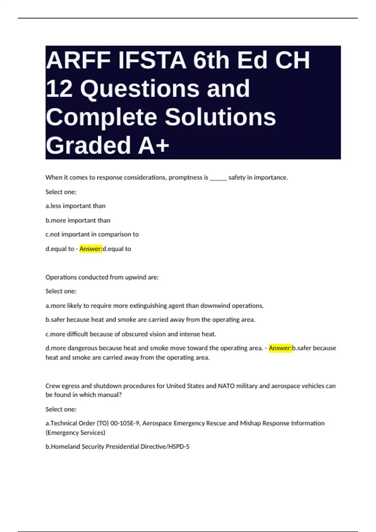 ARFF IFSTA 6th Ed CH 12 Questions and Complete Solutions Graded A+.