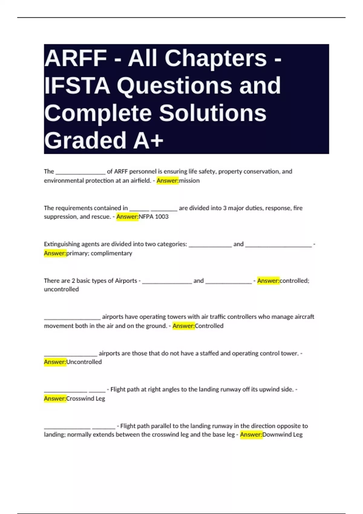 There are 2 basic types of Airports - _______________ and ______________ - Answer:controlled;