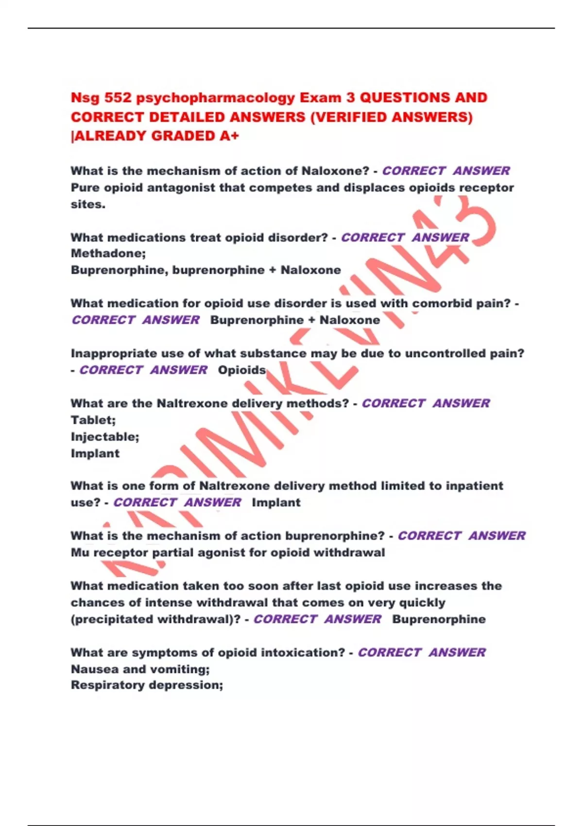 CORRECT DETAILED ANSWERS (VERIFIED ANSWERS)