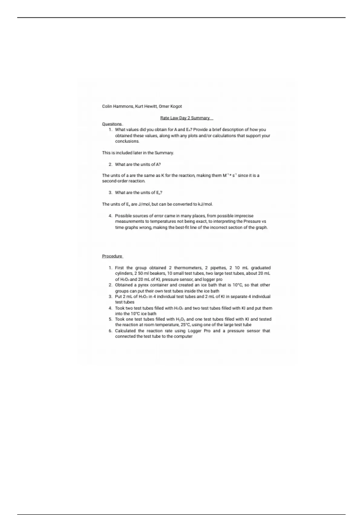 Rate Law Day 2 Summary for Ch 232. An Essential Study Resource just for YOU!!