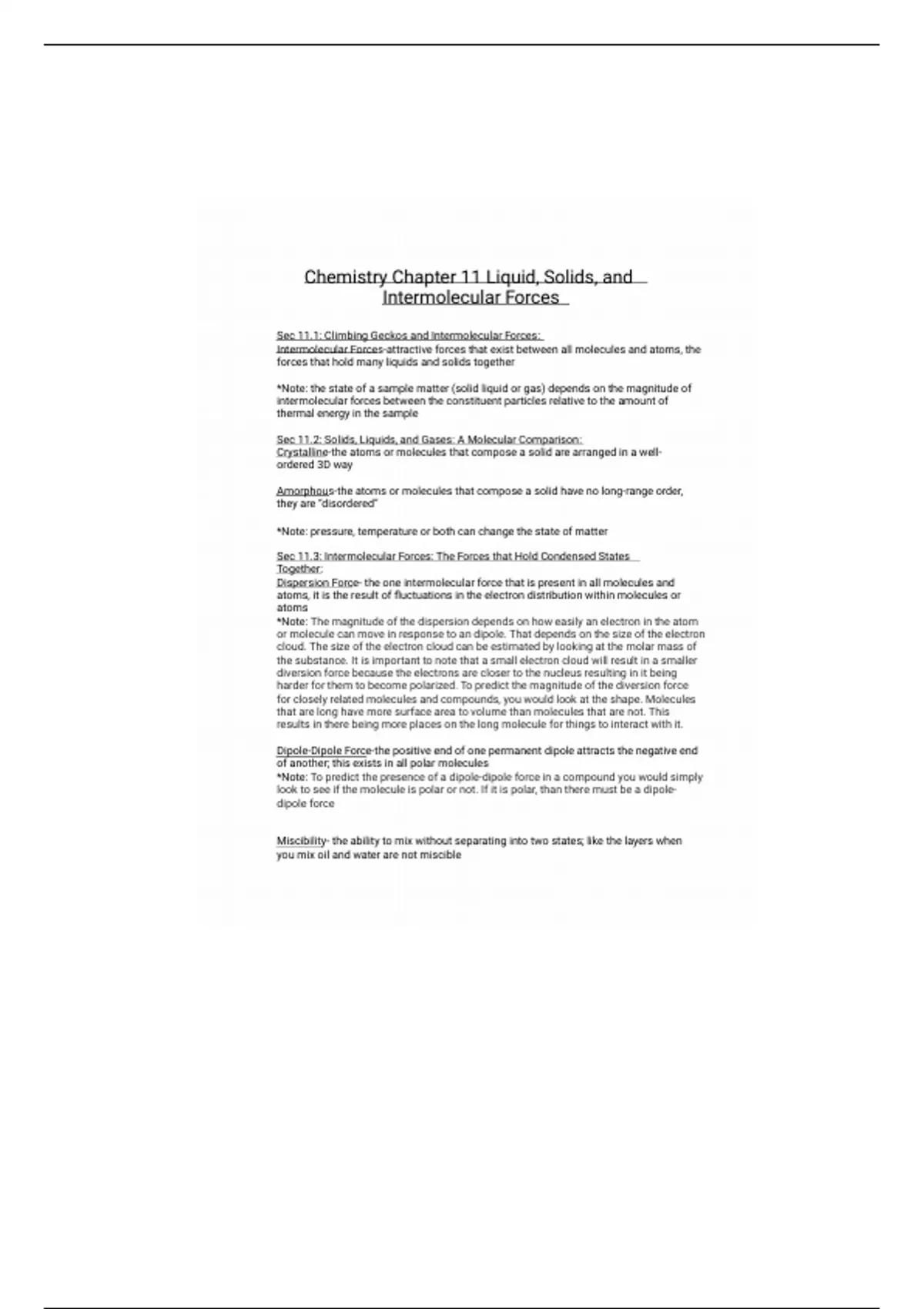 Sec 11.1: Climbing Geckos and Intermolecular Forces: