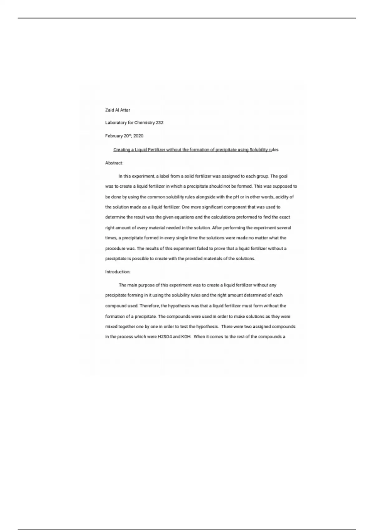 compound used. Therefore, the hypothesis was that a liquid fertilizer must form without the