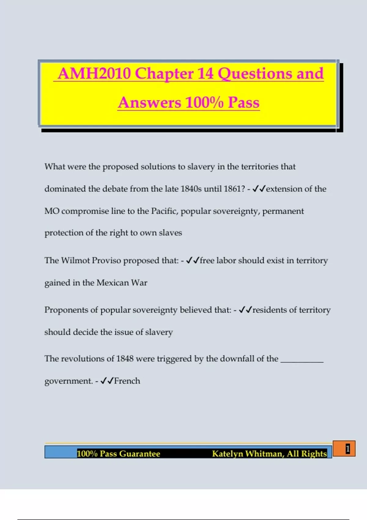 100% Pass Guarantee Katelyn Whitman, All Rights
