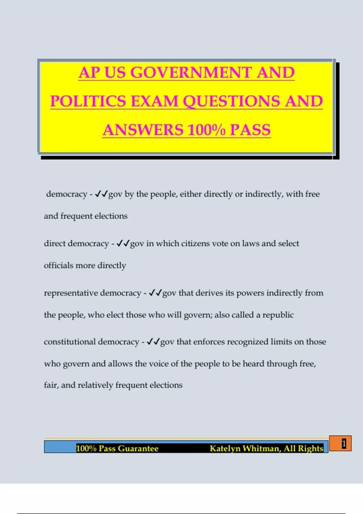 100% Pass Guarantee Katelyn Whitman, All Rights