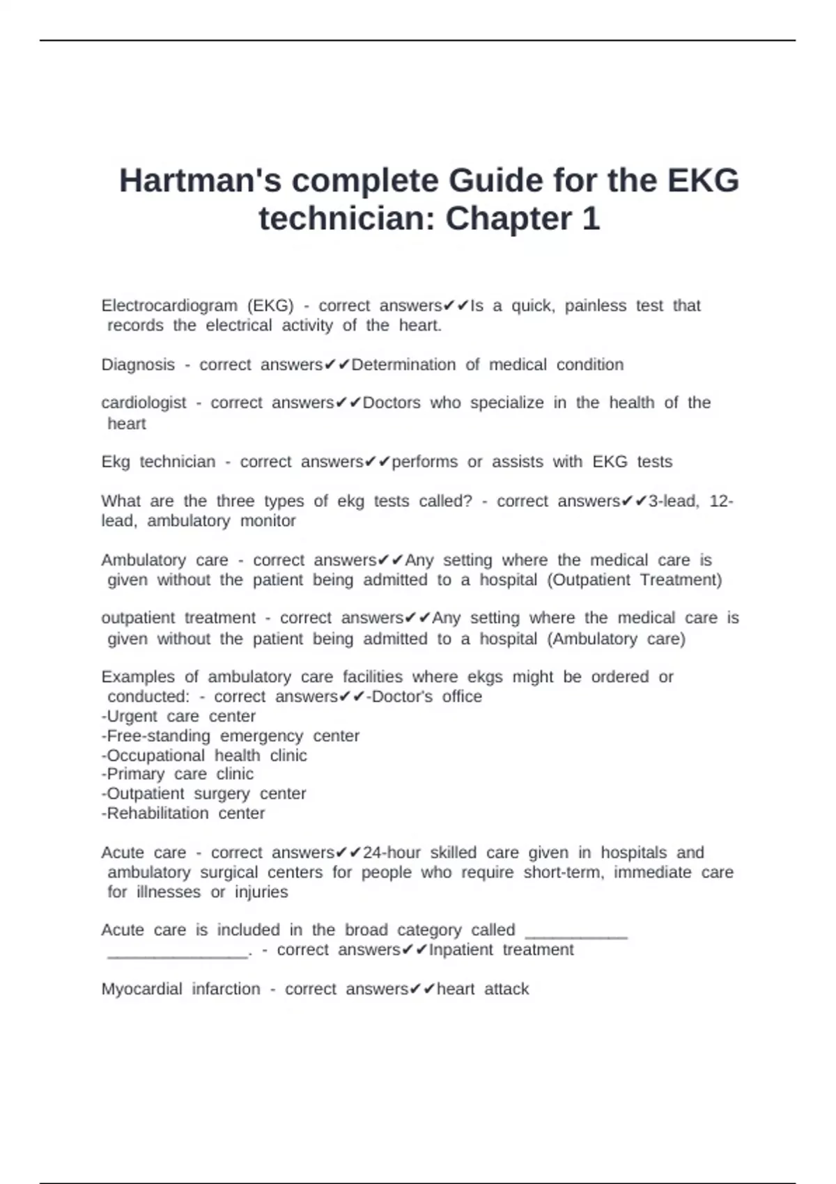 Electrocardiogram b(EKG) b- bcorrect banswers✔✔Is ba bquick, bpainless btest bthat
