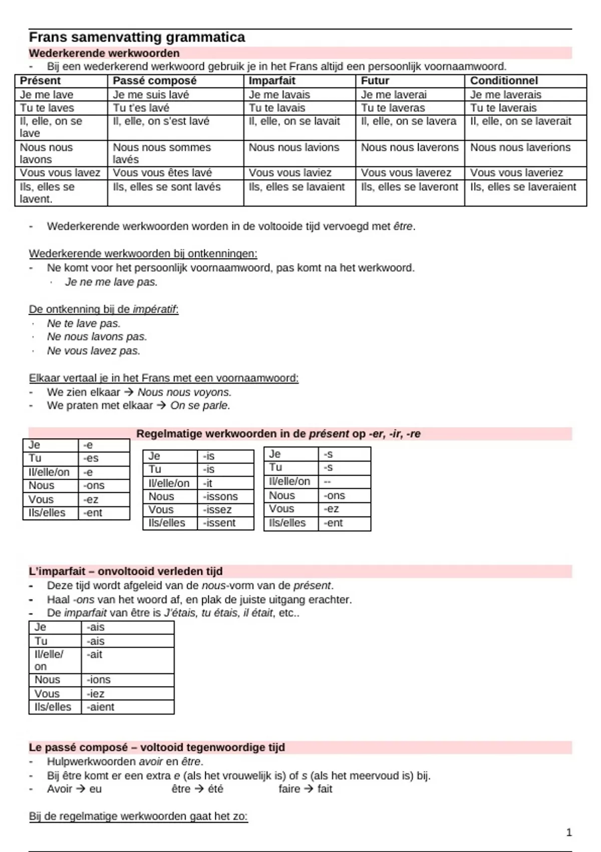 Frans samenvatting grammatica