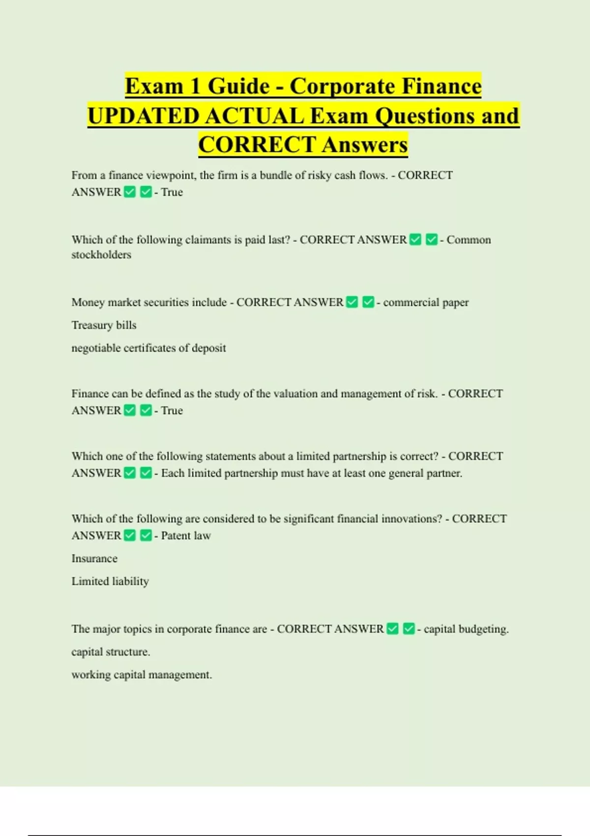 The major topics in corporate finance are - CORRECT ANSWER - capital budgeting.