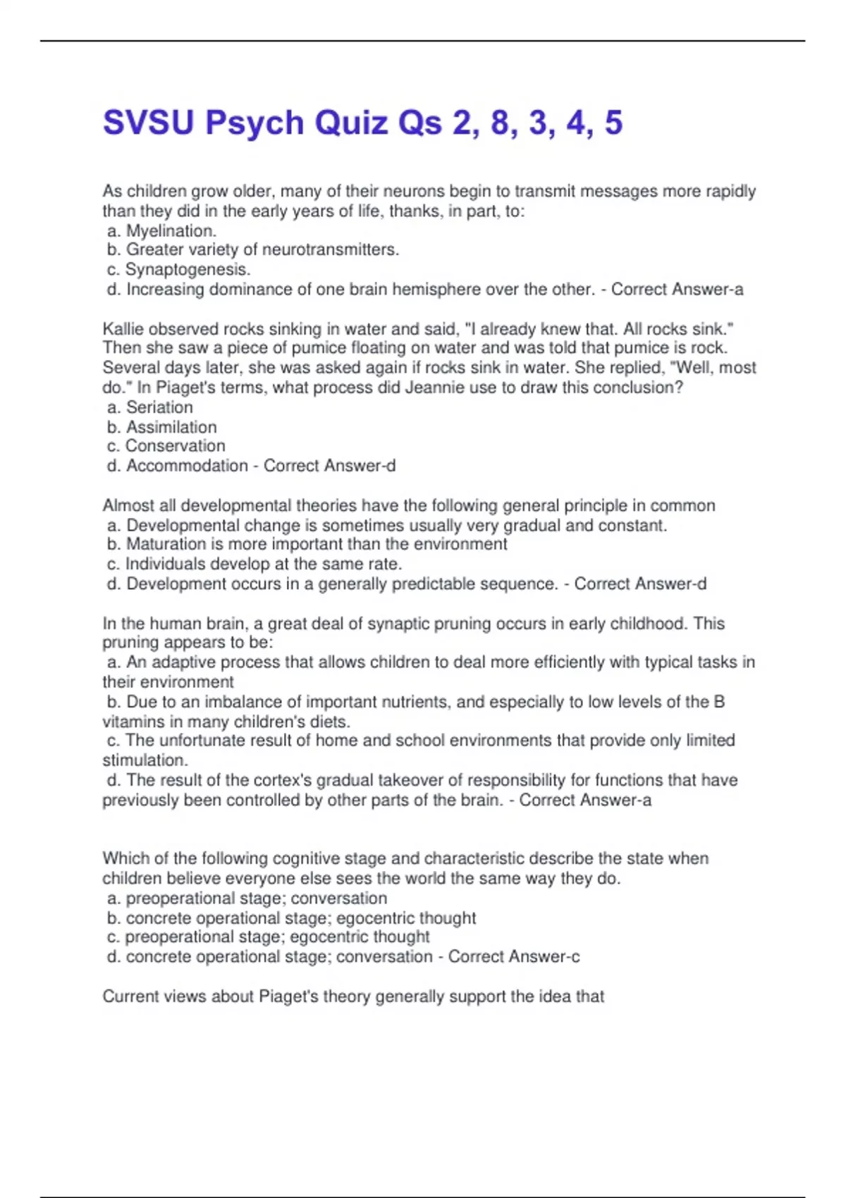 d. Increasing dominance of one brain hemisphere over the other. - Correct Answer-a