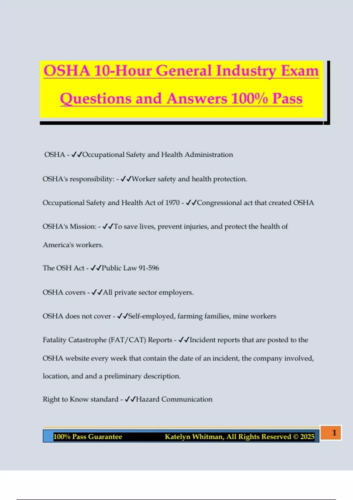100% Pass Guarantee Katelyn Whitman, All Rights Reserved © 2025 1
