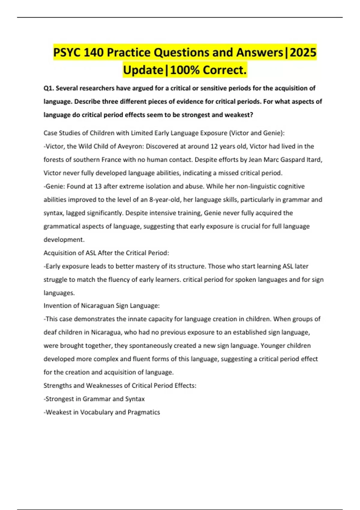 PSYC 140 Practice Questions and Answers|2025 Update|100% Correct.